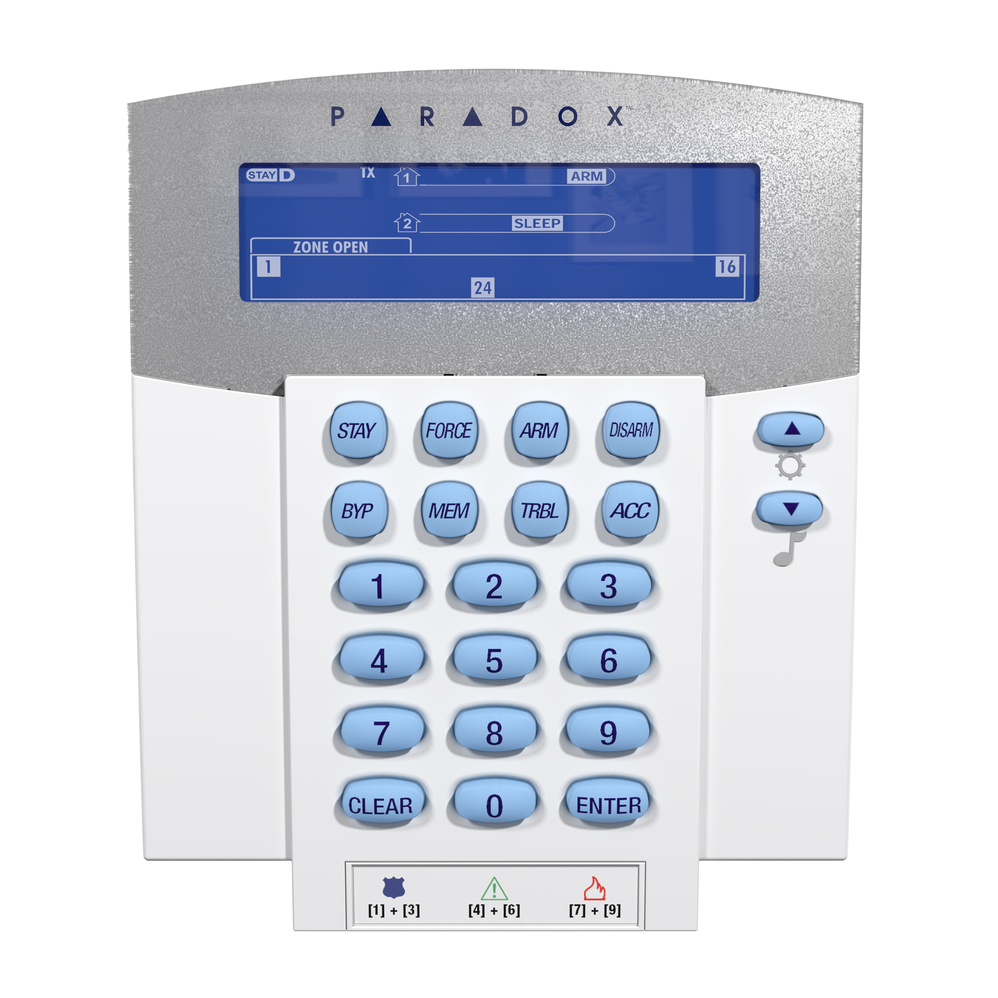 • Displays StayD, troubles, bypassed zones and alarm memory