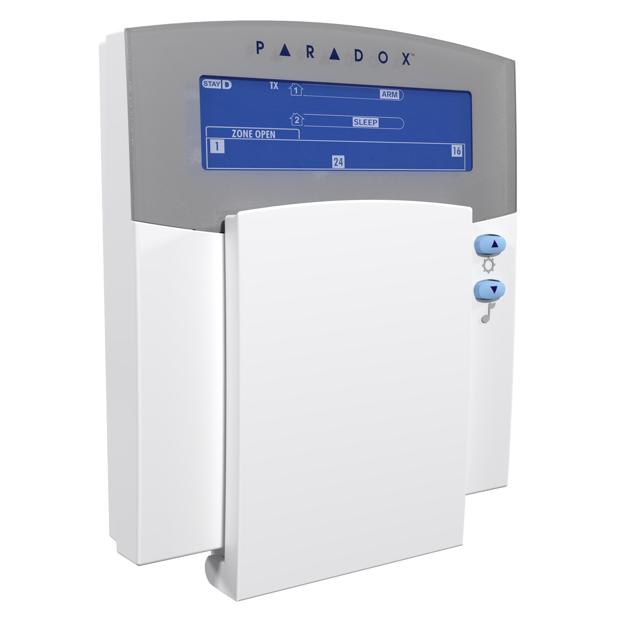 - Goes into sleep mode after 20 seconds to save battery life, but remains synchronized with the panel to automatically wake up upon an entry delay or an alarm to provide full functionality (system status, zone display and buzzer)