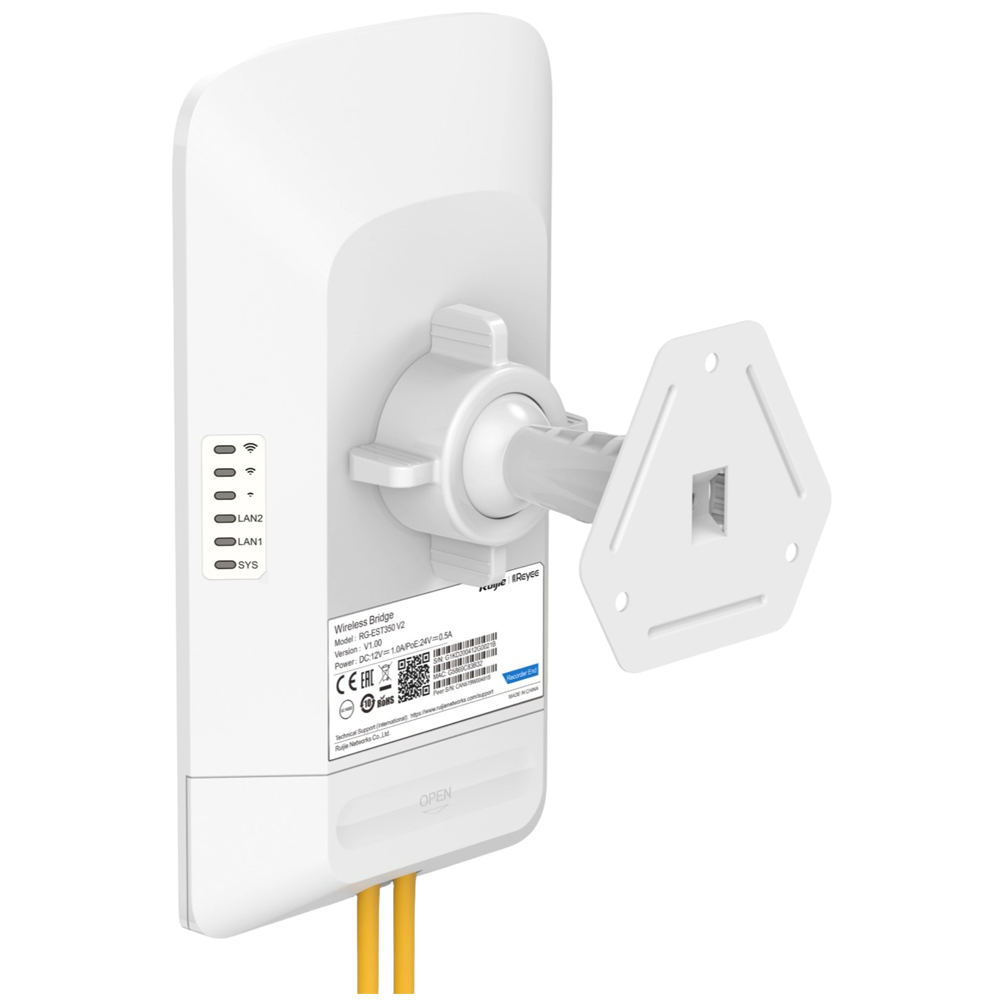 The RG-EST350 V2 is a high-performance outdoor wireless bridge designed for long-range point-to-point and point-to-multipoint networking applications. With a powerful 15dBi directional antenna, this device ensures stable and high-speed data transmission over distances of up to 5KM.